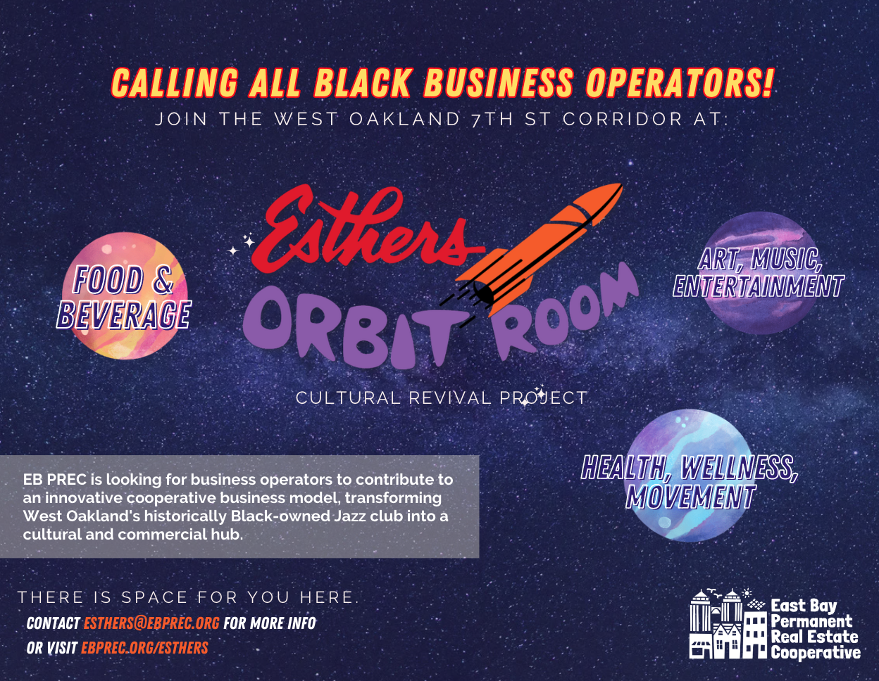 Thank you to everyone who responded to our food operators RFP for EB PREC's flagship project, Esther's Orbit Room! We will soon be selecting one anchor operator and up to four emerging operators. If you didn't get to respond to the RFP for Founding Food Operators, you can still fill out the interest form by CLICKING HERE.
